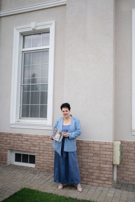 Жакет «Регина» в голубом оттенке — про спокойную элегантность и ощущение собранности без напряжения. Он выглядит легко и при этом держит форму, добавляя образу аккуратности и внутреннего баланса. Голубой цвет освежает и делает силуэт мягче, а натуральная фактура льна придаёт вещи характер и живость. Это жакет, который хочется носить не ради образа, а ради ощущения.