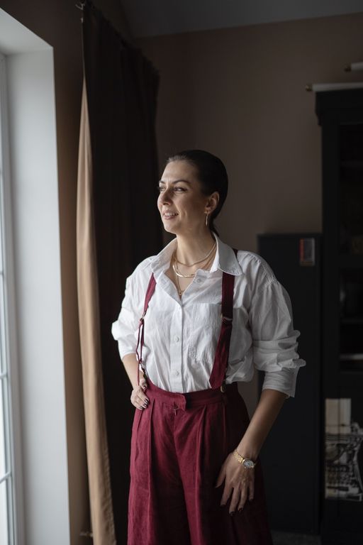 Представляем вам стильные брюки палаццо, выполненные из стопроцентного льна высочайшего качества белорусского производства. Эти брюки подчеркивают талию и прекрасно подходят к любому типу фигуры благодаря своему универсальному крою.