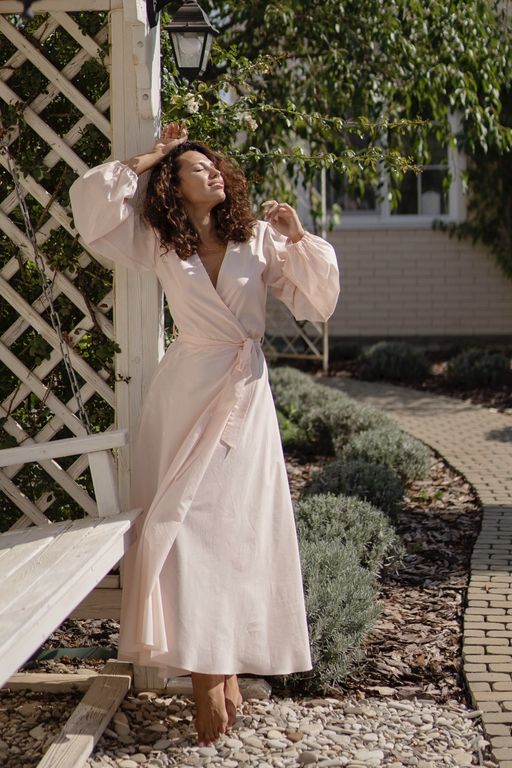 Побалуйте себя невероятной мягкостью и нежностью тончайшего батиста, укутав себя сорочкой в винтажном стиле и накинув сверху утонченное будуарное платье-халат с поясом