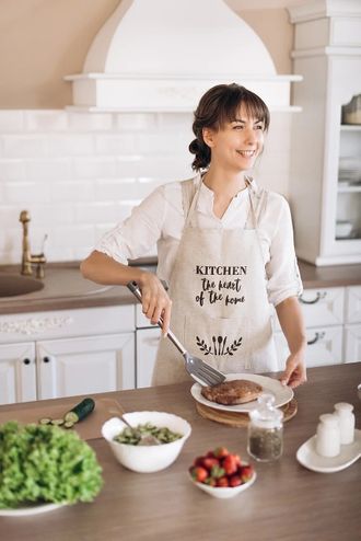 Надевайте текстильный передник при сервировке стола, приготовлении кулинарного шедевра, наводя чистоту и создавая уют в доме, работая с цветами в саду, составляя флористический букет, занимаясь творчеством.