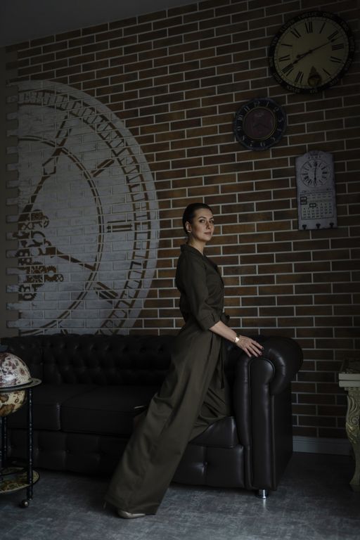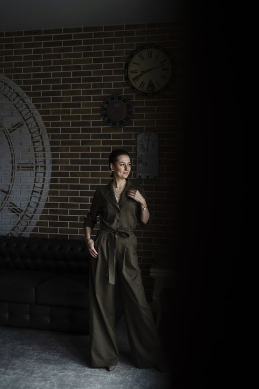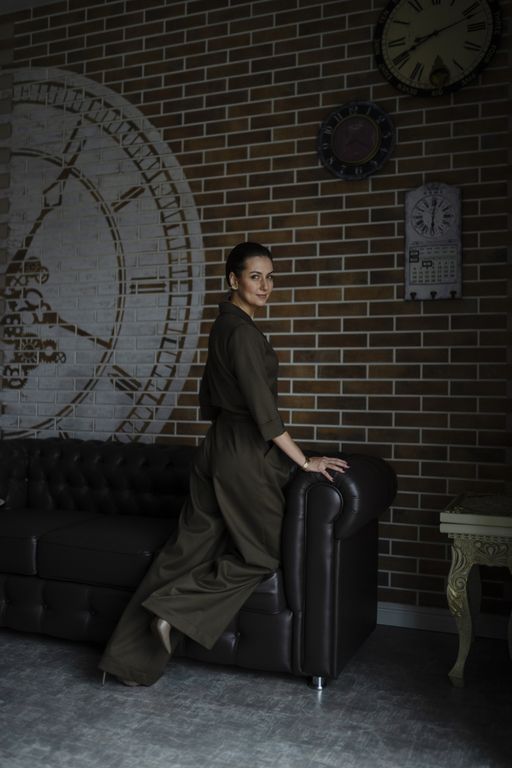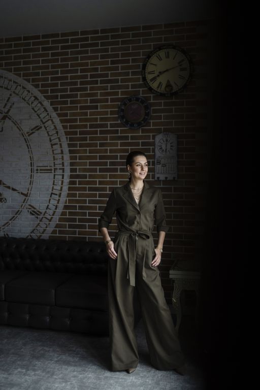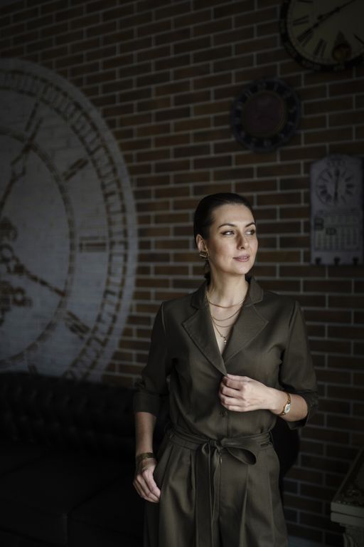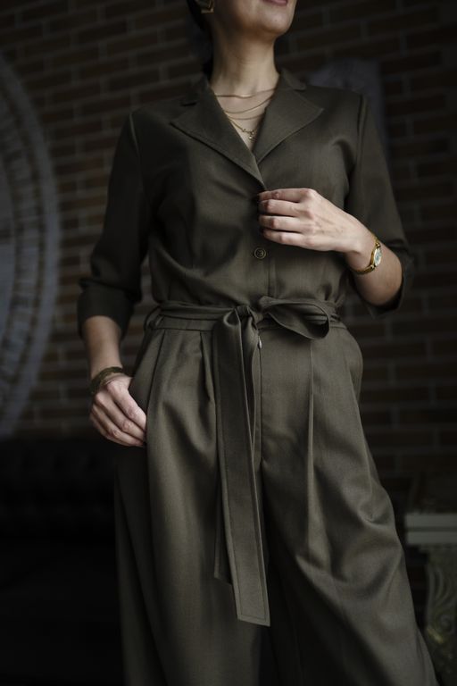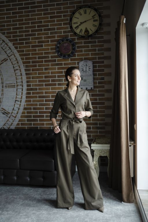 Представляем вашему вниманию стильный комбинезон из полушерсти цвета хаки, который станет незаменимым элементом вашего гардероба.