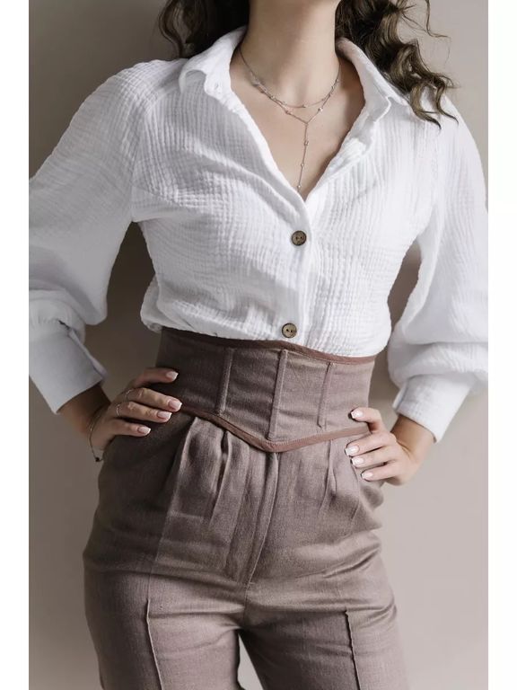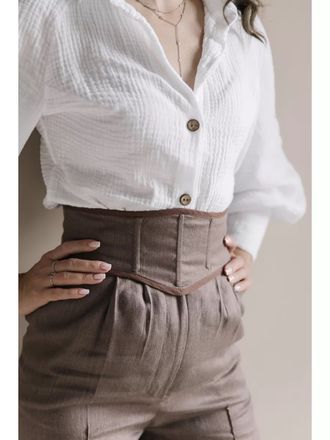 Наш товар выполнен из высококачественных натуральных тканей, что позволяет телу дышать. Пояс подойдет для классических брюк и юбок.