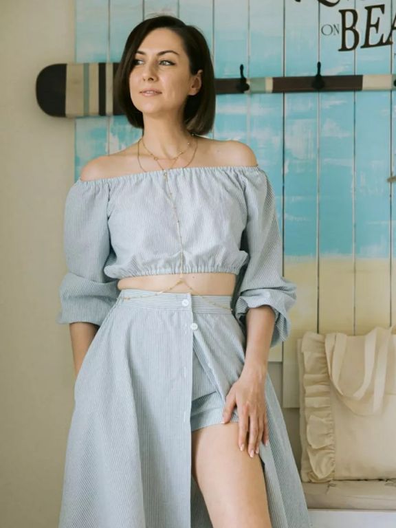 Модель топа с открытыми плечами и объемными широкими рукавами - крестьянка, достойно займет место в вашем гардеробе.