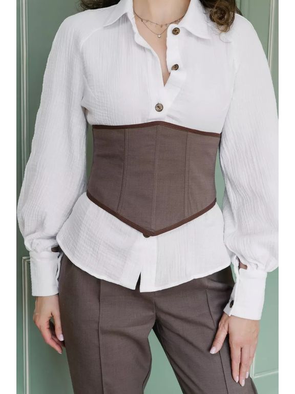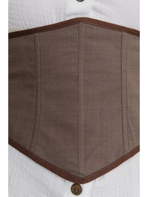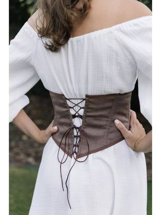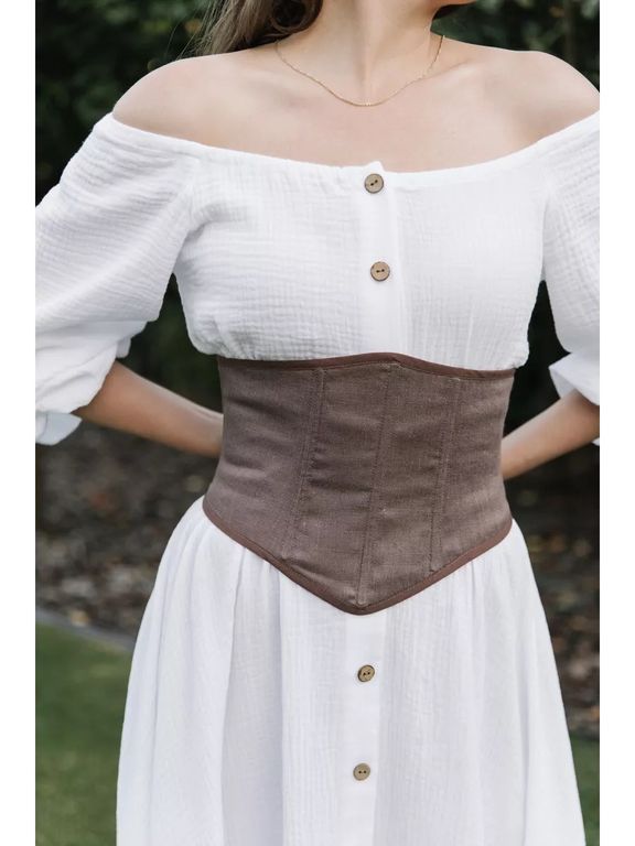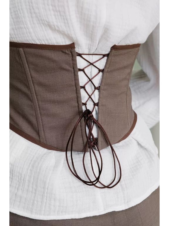 Сейчас этот модный аксессуар на завязках на пике популярности. Выполнен из натуральных тканей, что позволит вашему телу дышать. Шнуровкой регулируется обхват талии. Кроме того, её положение можно менять: спереди или сзади. Решать вам, винтажная модель идеально сядет по фигуре в любом случае.