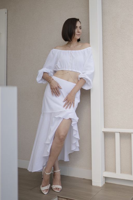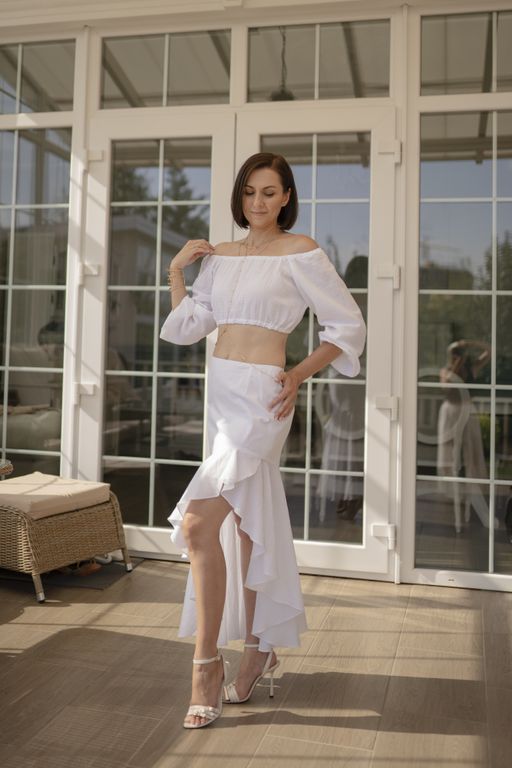 Для ваших смелых, ярких образов юбка прекрасно сочетается как с высотным кублуком, так и с различными летними босоножками без каблука. Вы можете носить её в комплекте с нашим топом из муслина, рубашкой или любыми другими топами и блузами.