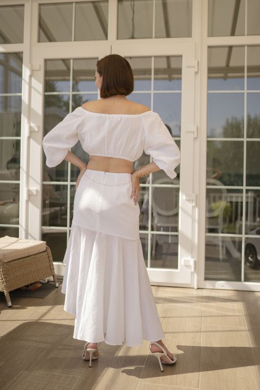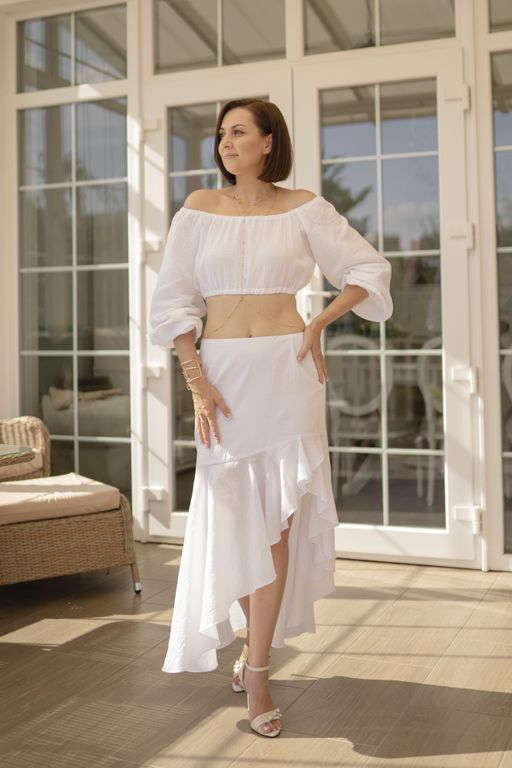 Откройте для себя лёгкую, дышащую и невесомую юбку с воланом из батиста, которая станет идеальным дополнением вашего летнего гардероба.