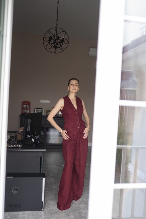 Жакет прекрасно сочетается с нашими брюками, создавая стильный и элегантный образ для любого случая.